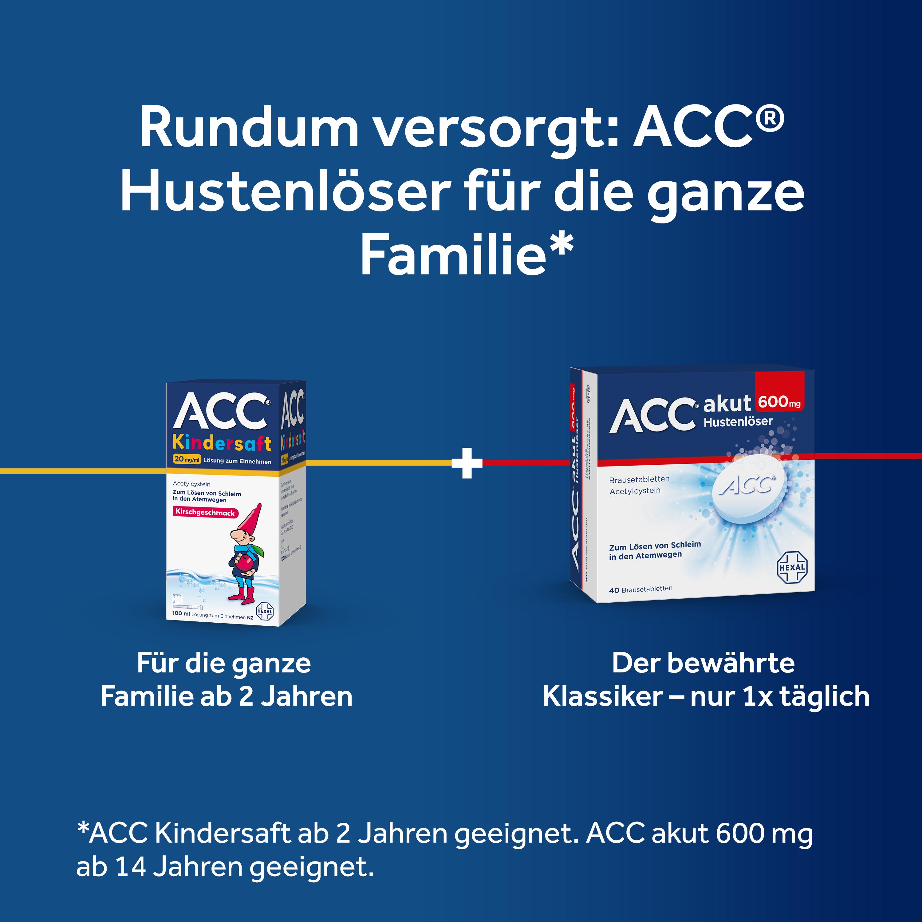 Seit über 25 Jahren vertrauen die Konsumenten auf die bewährte, schleimlösende Wirkung von ACC®. Der verschleimte Husten, der meist gegen Ende einer Erkältung auftritt, kann durchaus hartnäckig und lästig sein. Abhusten und die Lösung von festsitzendem Schleim kann hier für Erleichterung sorgen. Vertrauen Sie daher auch zukünftig Deutschlands Hustenlöser Nr. 1