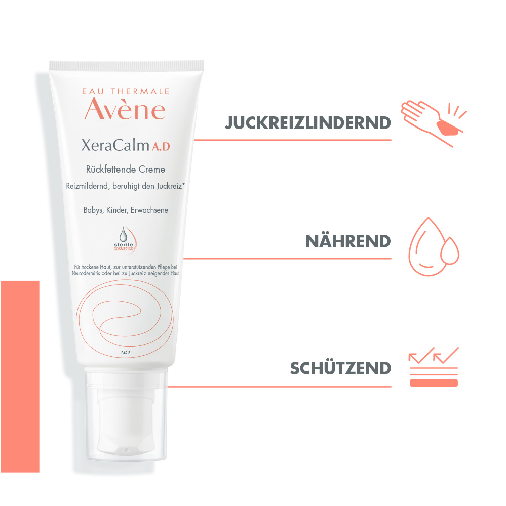 Die Haut wird durch die Anwendung der XeraCalm A.D Creme gepflegt und mit Feuchtigkeit versorgt. Sie beruhigt die Haut intensiv und sorgt dafür, dass die therapiefreien Intervalle bei atopischen Hautzuständen verlängert werden.