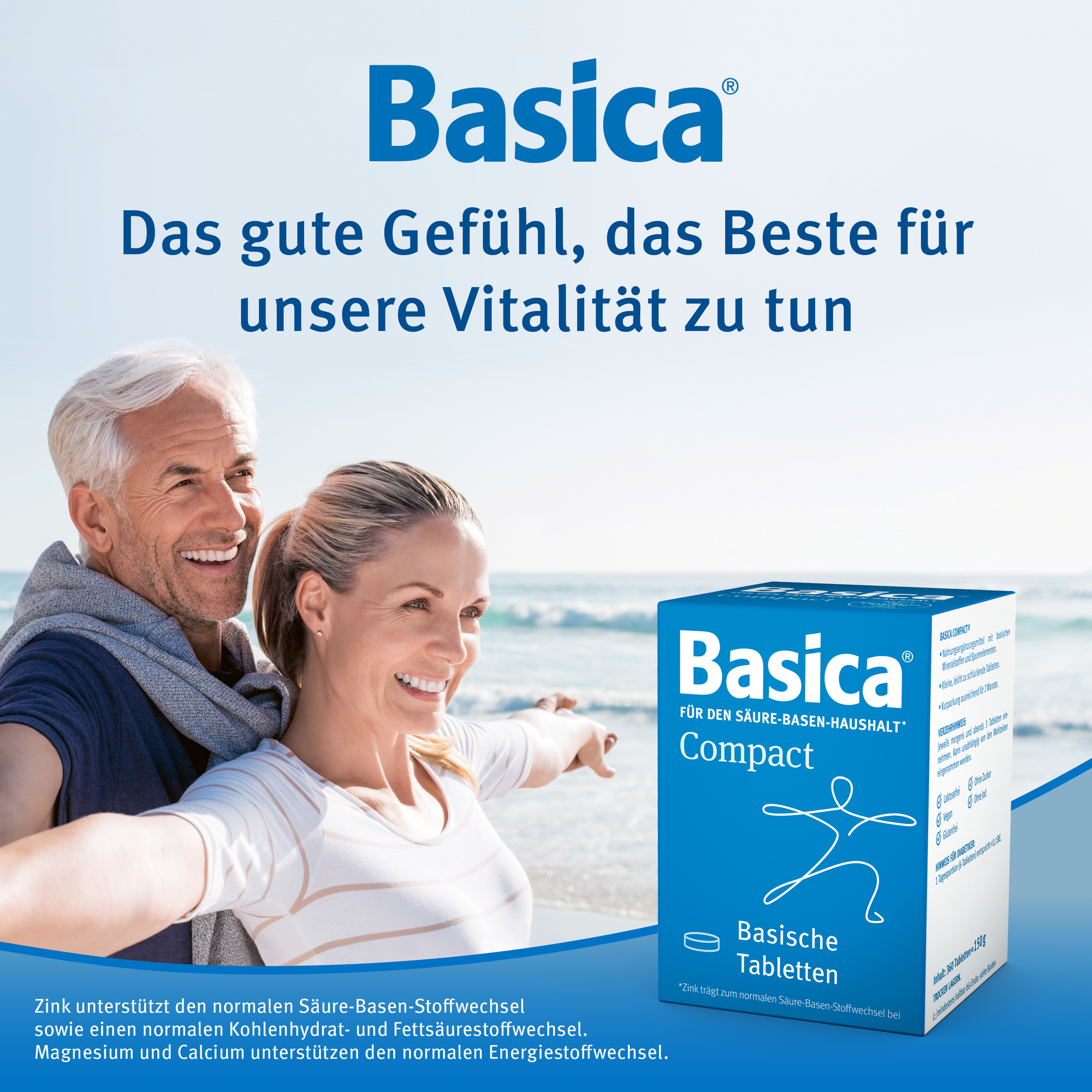 Basica® mit basischen Mineralstoffen und wertvollen Spurenelementen unterstützt das gesundheitliche Wohlbefinden und Zink den normalen Säure-Basen-Stoffwechsel.