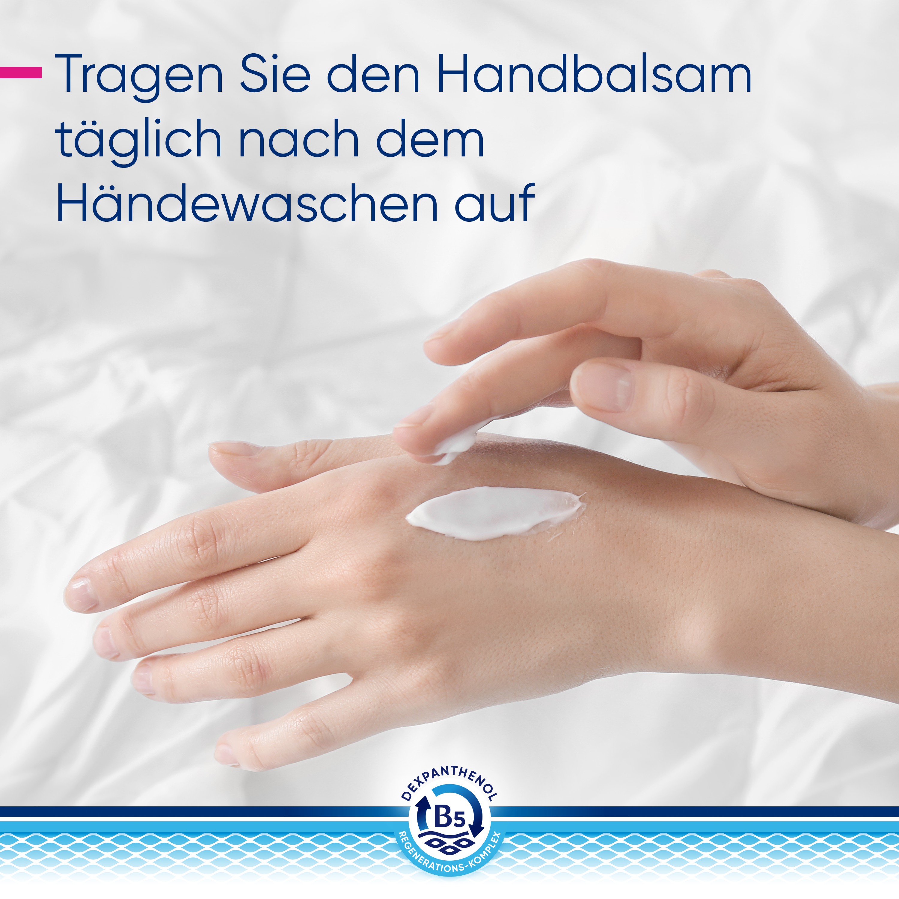 - Bepanthol® DERMA Regenerierender Handbalsam ist für die tägliche Pflege geeignet, spendet Feuchtigkeit und Schutz für raue und beanspruchte Haut. Er beruhigt trockene und juckende Hände sofort.