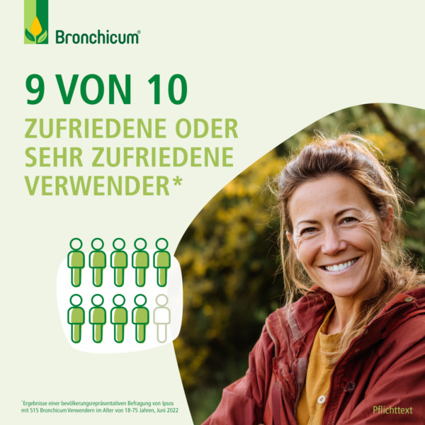 Die hochkonzentrierten* Bronchicum® Tropfen wirken nachgewiesen schnell und verbessern Husten- und Bronchitis-Symptome schon nach 36 Stunden.**