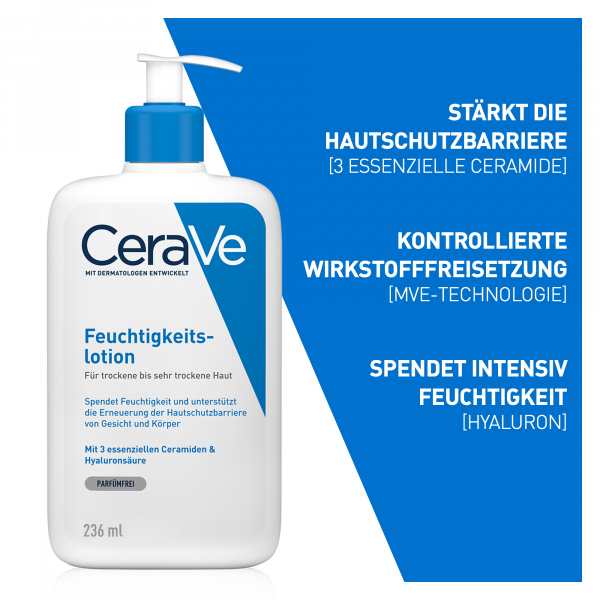 - Die CeraVe Feuchtigkeitslotion ist auf die Bedürfnisse trockener bis sehr trockener Haut abgestimmt und eignet sich für Gesicht und Körper