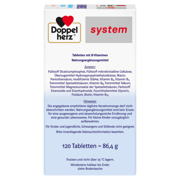 DoppelherzNahrungsergänzungsmittel sind kein Ersatz für eine ausgewogene und abwechslungsreiche Ernährung und eine gesunde Lebensweise. Die angegebene empfohlene tägliche Verzehrsmenge darf nicht überschritten werden. Außerhalb der Reichweite von kleinen Kindern aufbewahren.