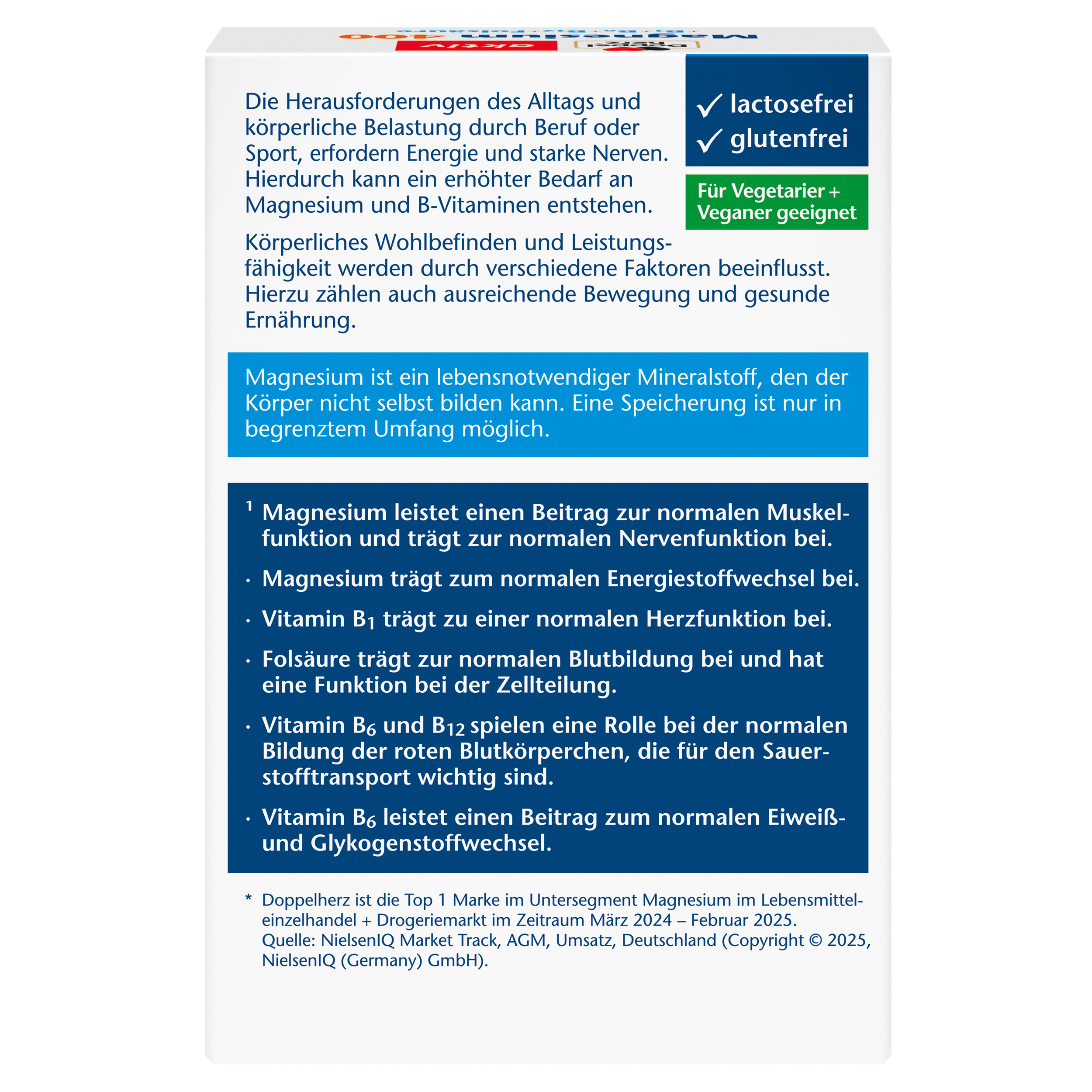 DoppelherzNahrungsergänzungsmittel sind kein Ersatz für eine ausgewogene und abwechslungsreiche Ernährung und eine gesunde Lebensweise. Die angegebene empfohlene tägliche Verzehrsmenge darf nicht überschritten werden. Außerhalb der Reichweite von kleinen Kindern aufbewahren.