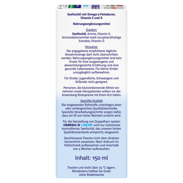 DoppelherzNahrungsergänzungsmittel sind kein Ersatz für eine ausgewogene und abwechslungsreiche Ernährung und eine gesunde Lebensweise. Die angegebene empfohlene tägliche Verzehrsmenge darf nicht überschritten werden. Außerhalb der Reichweite von kleinen Kindern aufbewahren.