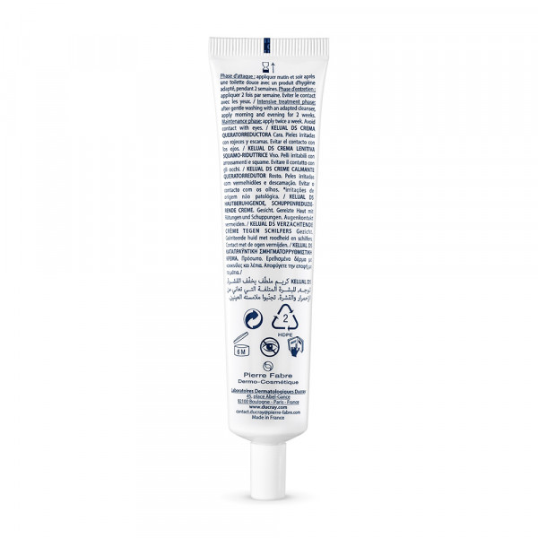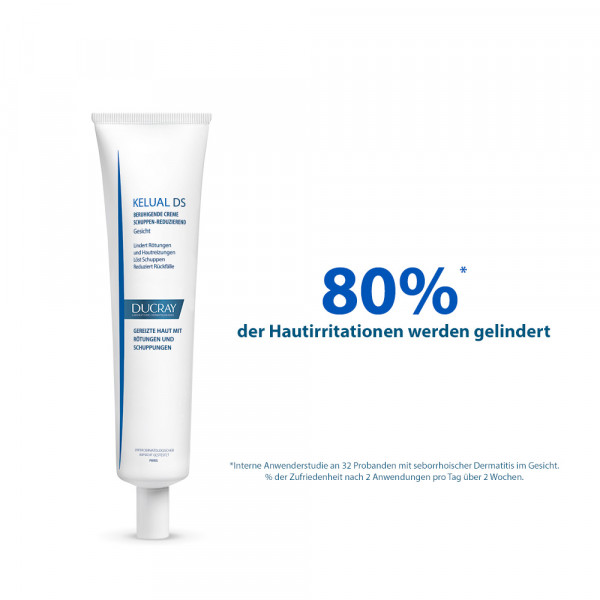 KELUAL DS CREME wurde speziell als Begleitpflege für irritierte Haut mit lokalen Rötungen und Schuppungen an Nasenflügeln, Augenbrauen und Haaransatz entwickelt. Eigenschaften: Die gesamte Formel wirkt auf alle Symptome des seborrhoischem Ekzems. Beta-Glycyrrhetinsäure, ein beruhigender Wirkstoff, lindert Juckreiz und Rötungen. Die Kombination der beiden Aktivstoffe Pirocton-Olamin (reinigende Wirkung) und Crotamiton hemmt die Vermehrung von Malassezia-Pilz. Keluamid und Guanidin-Glykolat lösen in Kombination Hautschuppen, die auf der Oberfläche anhaften (abgestorbene Hautzellen).