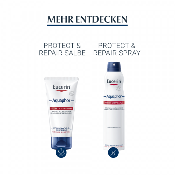 Die Eucerin Aquaphor Repair Salbe wurde speziell für die Pflege von extrem trockener, rissiger und irritierter Haut entwickelt und unterstützt eine schnellere Hautregeneration.