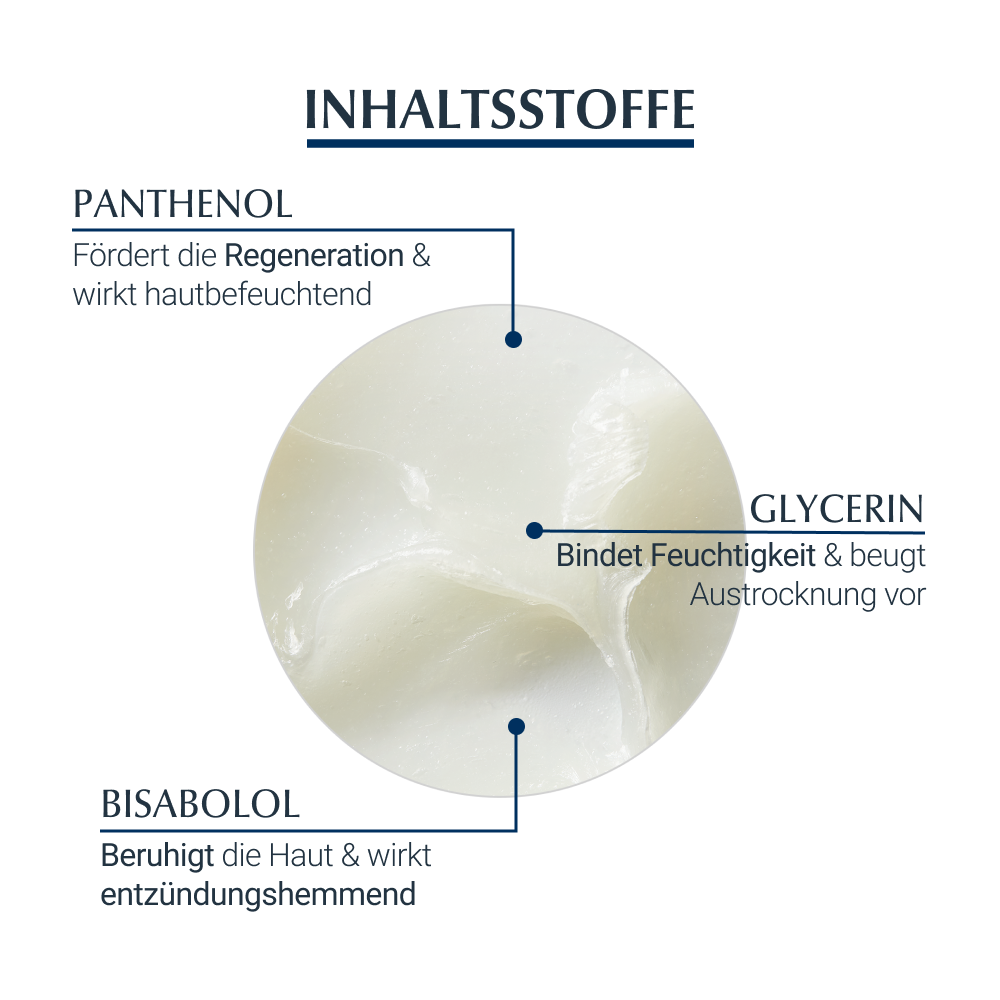 • Unterstützt die Regernation strapazierter Haut durch Sport oder reibende Sportbekleidung