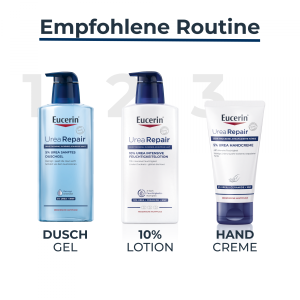Oft sind die Hände äußeren Faktoren wie kaltem Wetter, Wasser, Seife und anderen Chemikalien ausgesetzt und die Haut ist wesentlich anfälliger für Trockenheit, Rötungen und Irritationen. Der Repair-PLUS-Komplex der Handpflege verbessert die Feuchtigkeitsbindung der Haut und bringt den Lipid-(Fett-) und Feuchtigkeitshaushalt wieder in ein natürliches Gleichgewicht. Dies wird durch die Kombination der Wirkstoffe Urea, Ceramide sowie durch natürliche Feuchthaltefaktoren erreicht.