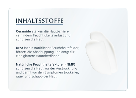 • Hautcreme mit Urea + Ceramide und NMF für einen höheren Feuchtigkeitsgehalt