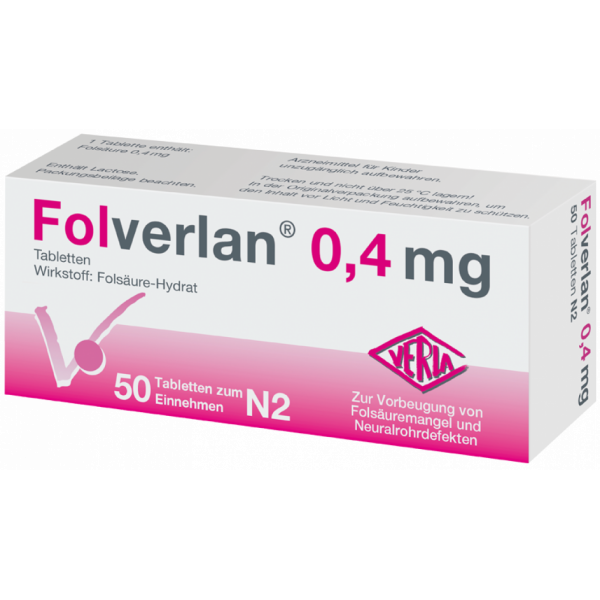 Folverlan® 0,4 mg bewährt sich seit vielen Jahren als Arzneimittel mit höchsten Qualitätsstandards in der Prophylaxe von Folsäuremangelzuständen. Die kleinen Tabletten sind leicht zu schlucken und ideal geeignet zur täglichen Einnahme bei Kinderwunsch und in der Schwangerschaft.