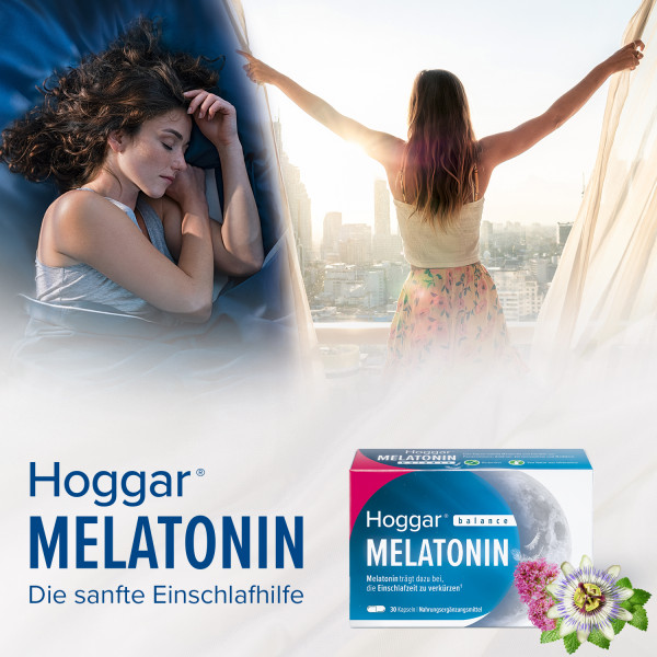 Neben Melatonin enthalten Hoggar® Melatonin Kapseln natürliche Pflanzenextrakte aus Passionsblume und Baldrian. Passionsblumenextrakte können spannungslösend und schlaffördernd wirken, während Extrakte aus Baldrian beruhigen und das Ein- und Durchschlafvermögen verbessern können.