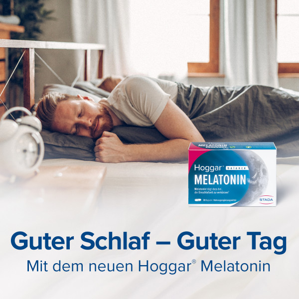 Hoggar® Melatonin Kapseln helfen auf sanfte und natürliche Weise dabei, abends zur Ruhe zu kommen und schneller einzuschlafen.
