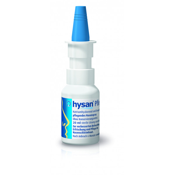 Bei Aufenthalt in trockener, klimatisierter Umgebung, nach Einfluss von Wind und Sonne kann sich die Nasenschleimhaut trocken anfühlen. Dann ist es sinnvoll, durch Anwendung von hysan Pflegespray der Nase intensive Feuchtigkeit zuzuführen und damit die natürliche Feuchtigkeitsbalance wieder herzustellen. hysan Pflegespray enthält das Natriumsalz der Hyaluronsäure, eine natürliche Substanz, die auch im Körper zu finden ist. Sie hat die besondere physikalische Eigenschaft, einen gleichmäßigen, stabilen und besonders lang haftenden Feuchtigkeitsfilm zu bilden. Dadurch hält der feuchtigkeitsspendende Effekt besonders lange an. Darüber hinaus enthält hysan Pflegespray Dexpanthenol, das zu der großen Stoffklasse der B-Vitamine gehört. Durch diesen Bestandteil wird das Bedürfnis der Nasenschleimhaut nach intensiver Regeneration gedeckt und die befeuchtende Eigenschaft von Natriumhyaluronat sinnvoll unterstützt. hysan Pflegespray eignet sich aufgrund dieser speziellen Eigenschaften insbesondere auch als sinnvolle Ergänzung einer Therapie mit schleimhautabschwellenden Nasensprays (bzw. -tropfen) bei Schnupfen. Hierbei sollte hysan Pflegespray über die Anwendungsdauer des abschwellenden Arzneimittels hinaus angewendet werden, um eine optimale Regeneration der Nasenschleimhaut zu unterstützen.