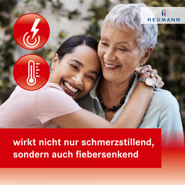 Anwendungsgebiete: Zur kurzzeitigen symptomatischen Behandlung von leichten bis mäßig starken Schmerzen wie Kopfschmerzen, Regelschmerzen, Zahnschmerzen, der akuten Kopfschmerzphase bei Migräne mit oder ohne Aura sowie Fieber. Warnhinweise: Bei Schmerzen oder Fieber ohne ärztlichen Rat nicht länger anwenden als in der Packungsbeilage vorgegeben! Enthält Sorbitol und Phospholipide aus Sojabohnen. Stand: 12/2024.