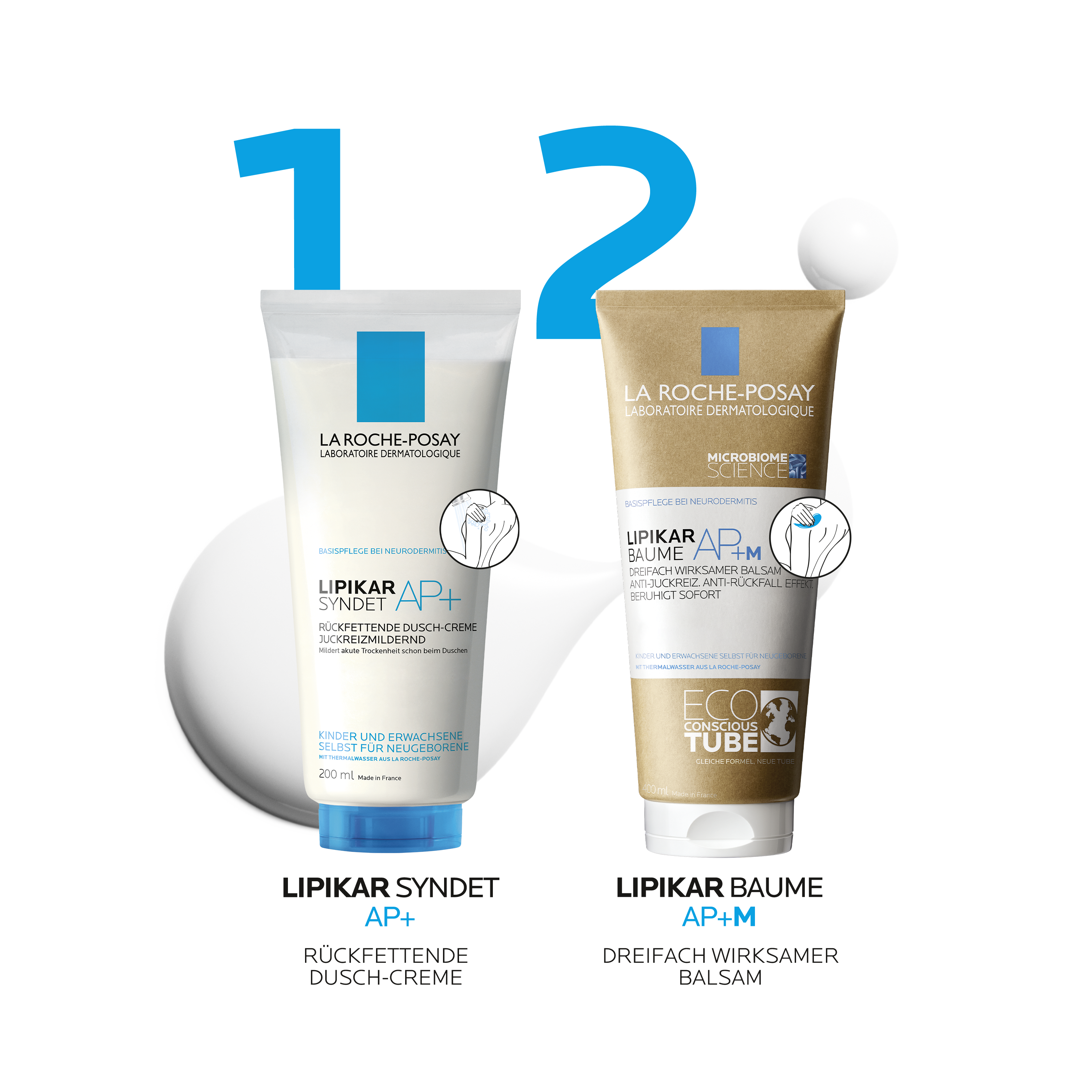 Die LIPIKAR SYNDET AP+ RÜCKFETTENDE DUSCH-CREME von La Roche-Posay ist eine Körperreinigung ohne Duftstoffe. Das sanft reinigende Cremegel eignet sich als Basispflege zum Duschen bei zu Neurodermitis neigender, empfindlicher und sehr trockener Haut. Durch die rückfettende Eigenschaft wirkt die LIPIKAR SYNDET AP+ DUSCH-CREME hautberuhigend und juckreizlindernd. Das Cremegel lässt sich leicht und schonend auf die Haut auftragen, ohne in den Augen zu brennen oder die Haut auszutrocknen. Es ist für Säuglinge, Kinder und Erwachsene geeignet. Angereichert mit Niacinamid und dem exklusiven Wirkstoff Aqua Posae Filiformis lindert LIPIKAR SYNDET AP+ den Juckreiz bereits unter der Dusche. Die in der Formulierung enthaltene Sheabutter pflegt empfindliche Haut zusätzlich. Ergänzend zu LIPIKAR SYNDET AP+ eignet sich der rückfettende Körperbalsam LIPIKAR BAUME AP+. Die Pflegeprodukte der LIPIKAR AP+ Serie von La Roche-Posay sind für die ganze Familie und als täglicher Begleiter geeignet. Hinweis: Grundsätzlich sollte langes und heißes Duschen vermieden werden. Nach dem Duschen die Haut nicht trocken reiben, sondern sanft abtupfen. Die Pflege ist nicht zur Einnahme geeignet. Kleinkinder sollten das Produkt nur unter Aufsicht von Erwachsenen verwenden.