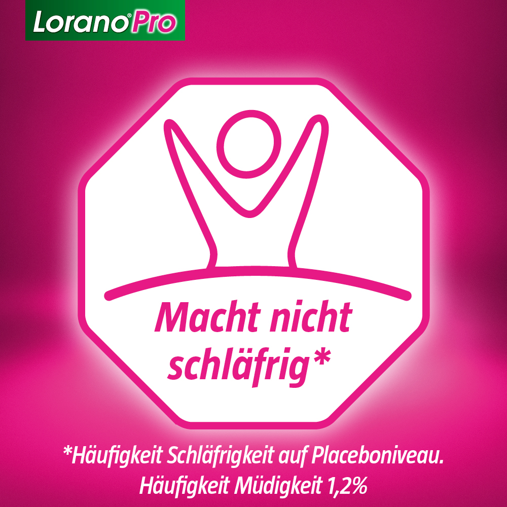 Keine Allergietablette ist stärker1 als Lorano®Pro. Das Arzneimittel wirkt schnell2 und langanhaltend für eine Besserung der Symptome an Nase, Auge und Haut. Laut aktuell gültigen Leitlinien gehören Antihistaminika der zweiten Generation und deren Weiterentwicklungen, zu denen auch Lorano®Pro gehört ,zu den Mitteln der ersten Wahl bei der symptomatischen Behandlung der allergischen Rhinitis und Urtikaria.