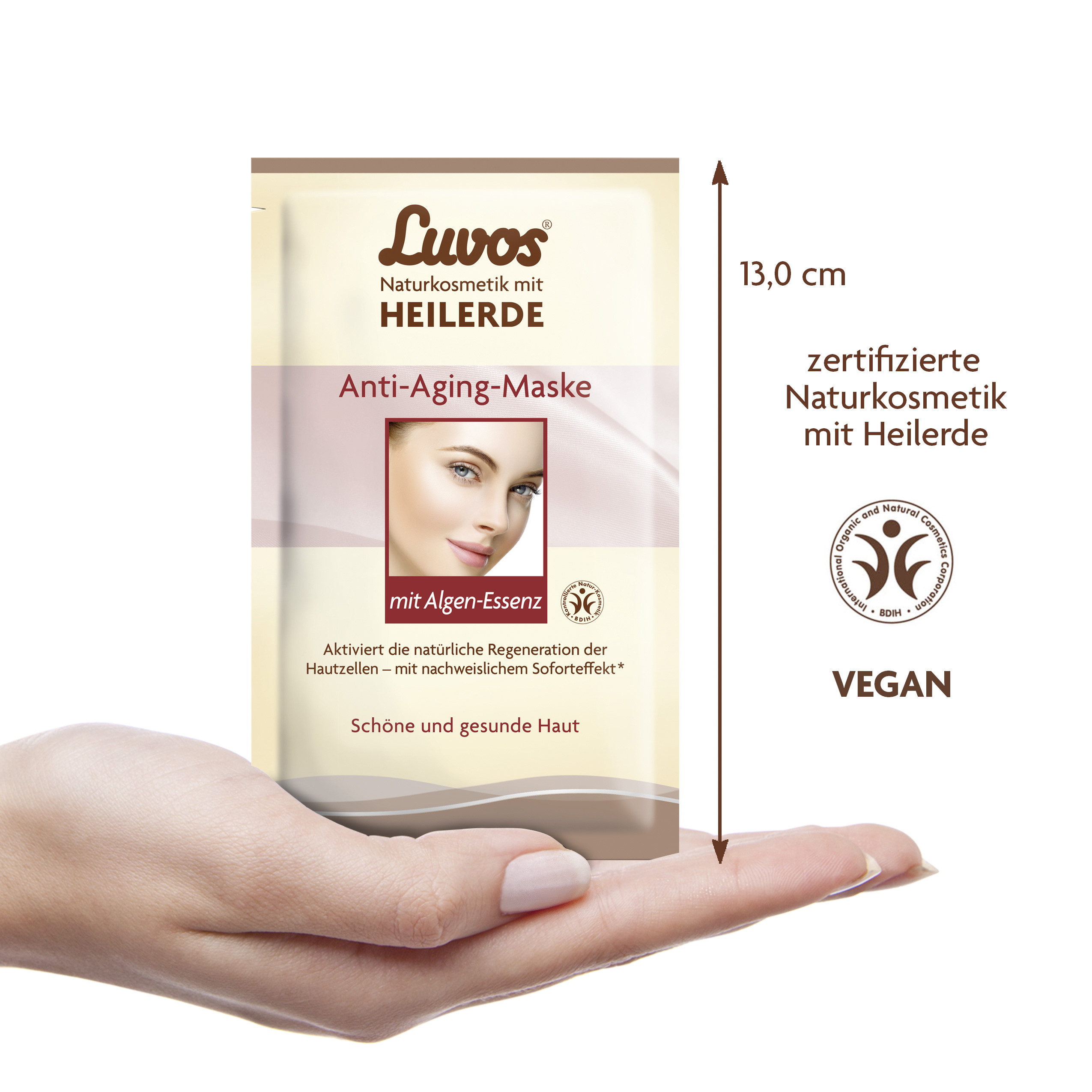Zertifizierte Naturkosmetik, hergestellt in Deutschland: das Familienunternehmen Luvos mit 100-jähriger Tradition stellt dieses Produkt nach höchstem Standard von BDIH her. Es ist selbstverständlich vegan, tierversuchsfrei. Die Hautverträglichkeit ist dermatologisch bestätigt. Die Anti-Aging-Maske ist vollkommen frei von problematischen Zusatzstoffen wie Mikroplastik, Mineralöl, Parabenen, Silikonen, Paraffinen, PEGs, künstlichen Farb-, Duft- und Konservierungsstoffen.