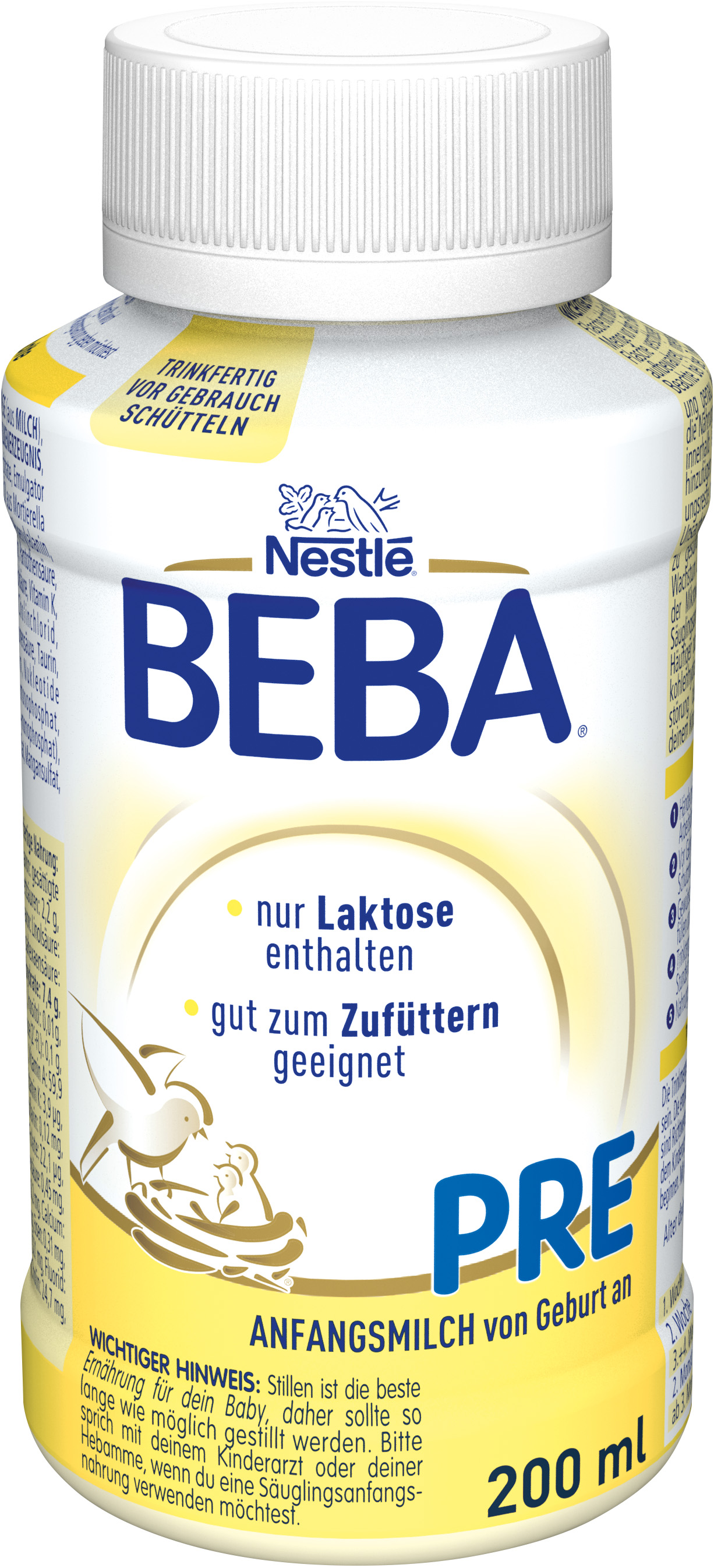 Stillen ist die beste Ernährung für Ihr Baby. Sprechen Sie bitte mit Ihrem Kinderarzt oder Ihrer Hebamme, wenn Sie eine Säuglingsnahrung verwenden wollen. Säuglingsnahrungen enthalten Kohlenhydrate. Häufiger oder dauernder Kontakt der Zähne mit kohlenhydrathaltigen Nahrungen kann Zahnzerstörungen durch Karies verursachen. Überlassen Sie Ihrem Kind die Flasche nicht zum Dauernuckeln.