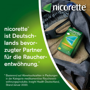 Das aktive Kauen des Nikotinkaugummis setzt das enthaltene Nikotin frei, das anschließend über die Mundschleimhaut in die Blutbahn gelangt und den Nikotinspiegel im Blut erhöht. Dadurch werden Rauchverlangen und typische Entzugserscheinungen gemildert. Noch dazu hilft das aktive Kauen, den Raucher vom Rauchimpuls abzulenken. Die nicorette® Kaugummis sind zuckerfrei und haben einen fruchtig-frischen Geschmack. Erhältlich sind die Kaugummis auch in den Geschmacksrichtungen whitemint und freshmint.