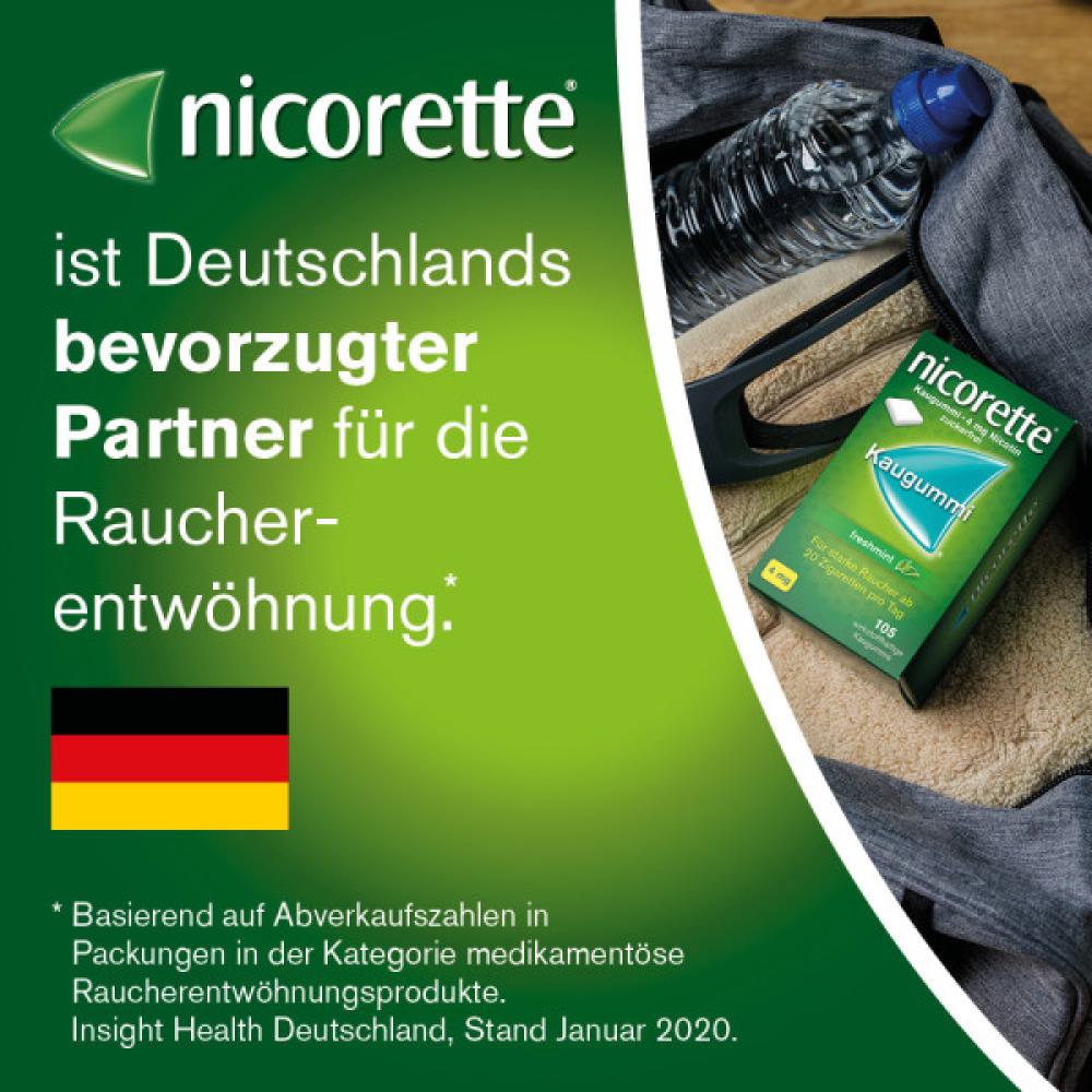 Die nicorette® Kaugummis sind nicht nur zuckerfrei, sondern haben auch einen frischen Minzgeschmack. Mit den enthaltenen 4 mg Nikotin eignen sich diese Kaugummis für Personen, die bislang mehr als 20 Zigaretten pro Tag rauchen. Wenn bis zu 20 Zigaretten geraucht werden, sollten die niedriger dosierten Kaugummis mit 2 mg Nikotin verwendet werden. Die nicorette® Kaugummis sind auch in den Geschmacksrichtungen freshfruit und whitemint erhältlich.