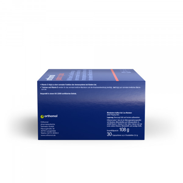 Orthomol junior C plus ist ein Nahrungsergänzungsmittel für Kinder. Mit Vitamin D als Beitrag zu einer normalen Funktion des Immunsystems bei Kindern und mit weiteren Mikronährstoffen1.