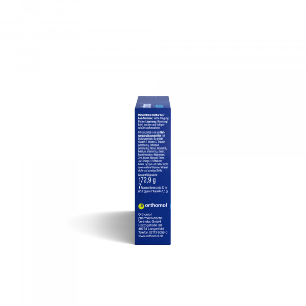 OrthomolNahrungsergänzungsmittel sind kein Ersatz für eine ausgewogene und abwechslungsreiche Ernährung und eine gesunde Lebensweise. Die angegebene empfohlene tägliche Verzehrsmenge darf nicht überschritten werden. Außerhalb der Reichweite von kleinen Kindern aufbewahren.