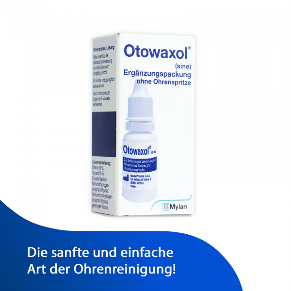 Otowaxol sine dient der besonders schonenden und verträglichen Entfernung von überschüssigem und verhärtetem Ohrenschmalz. Die Reinigungslösung entfernt die Ohrenschmalzmasse mit Hilfe von lauwarmen Wasser und der Ohrenspritze schonend aus dem Gehörgang ohne ihn dabei zu verletzen.