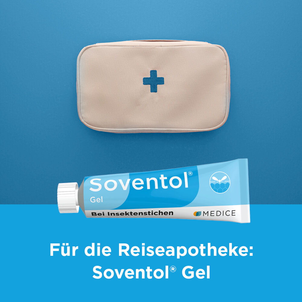 Bei Insektenstichen ist Soventol® Gel ein echter Klassiker für die ganze Familie! Es nimmt die Rötung und lindert den Juckreiz – schnell und langanhaltend zugleich. Denn nur Soventol® Gel enthält das Antihistaminikum Bamipin, das für seinen schnellen Wirkeintritt und den langen Wirkeffekt bekannt ist. Dies wurde in unterschiedlichen Studien bereits mehrfach gezeigt. Dank der sehr guten Verträglichkeit ist Soventol® Gel bereits für Kleinkinder geeignet.