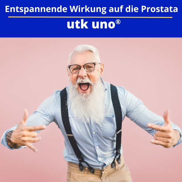 Die Prostata liegt am Ausgang der Harnblase und umschließt die Harnröhre ringförmig. Vergrößert sich die Prostata, kann sie die Harnröhre einengen und zu Beschwerden wie häufigem Wasserlassen, einem schwachen Harnstrahl oder einem verzögerten Beginn der Blasenentleerung führen. utk uno ist ein pflanzliches Arzneimittel, das bei Prostatabeschwerden die Problemebeim Wasserlassen erleichtern kann. Untersuchungen haben gezeigt, dass die Beschwerden bei gutartiger Vergrößerung der Prostata durch Brennnesselwurzelextrakt deutlich gebessert werden können.
