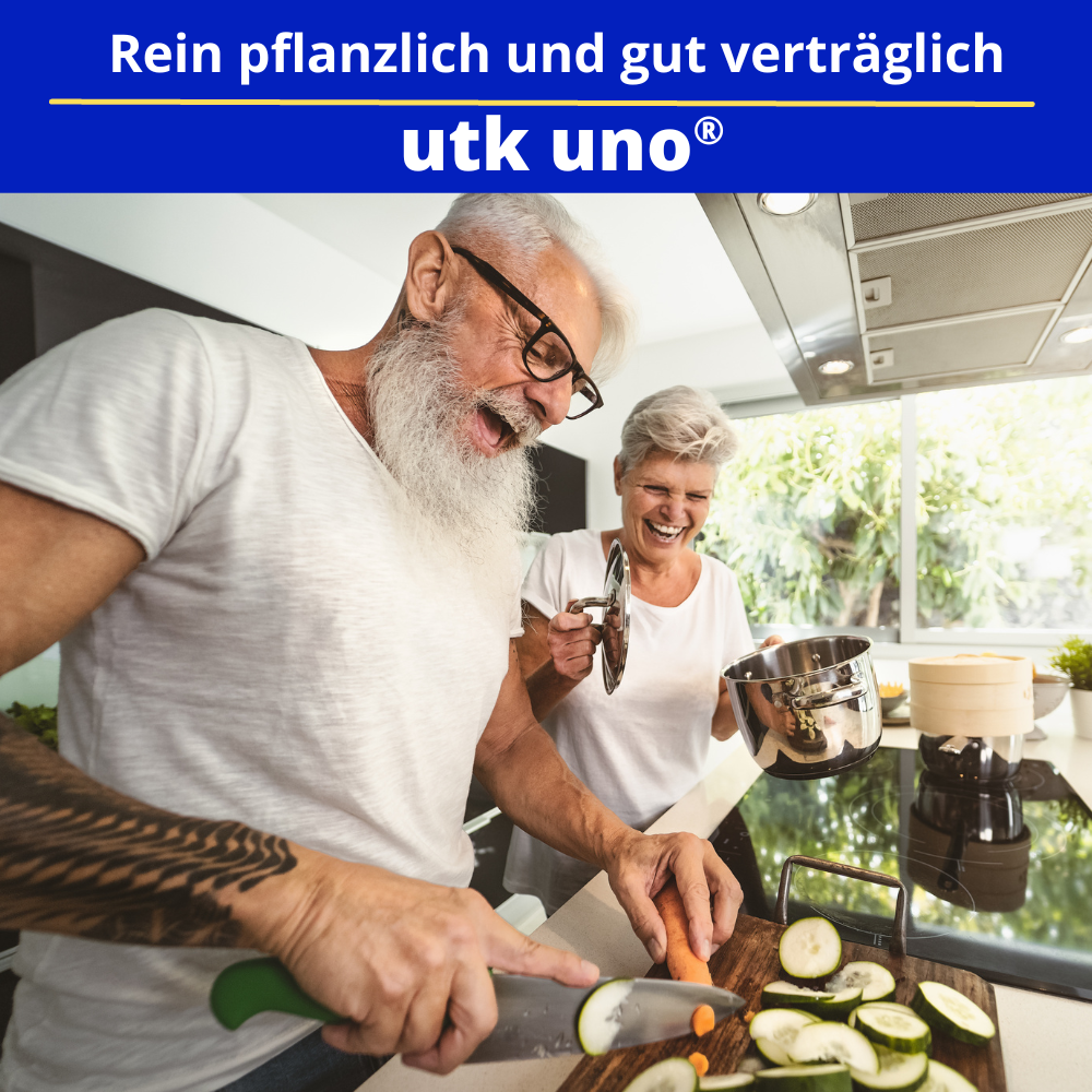 EINFACHE ANWENDUNG: utk uno lässt sich durch eine 1x tägliche Einnahme einfach in den Alltag integrieren. Möglichst zur gleichen Tageszeit mit ausreichend Flüssigkeit nach einer Mahlzeit einnehmen.