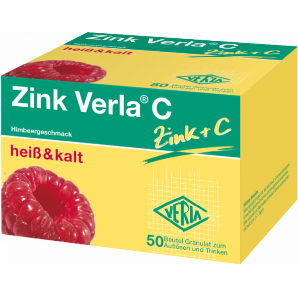 Eine optimale Versorgung mit Zink und Vitamin C ist sehr wichtig, denn sie tragen unter anderem zu einer normalen Funktion des Immunsystems bei. Mit Zink Verla® C können Sie Ihre tägliche Ernährung und Versorgung mit Zink und Vitamin C sinnvoll unterstützen. Das hochwertige Trinkgranulat kann einfach mit Wasser angerührt werden und schmeckt fruchtig nach Himbeere. So wird auch die Flüssigkeitsaufnahme unterstützt. Zusätzlich wird in Zink Verla® C ausschließlich organisches Zinkgluconat für eine gute Aufnahme und Bioverfügbarkeit verwendet.